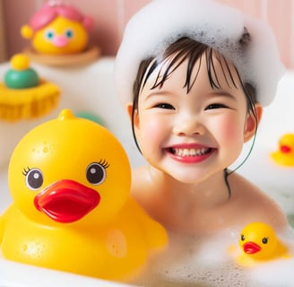 ¡Qué buenos ratos pasaban riendo y jugando el patito de plástico y la niña con jabón en el pelo!