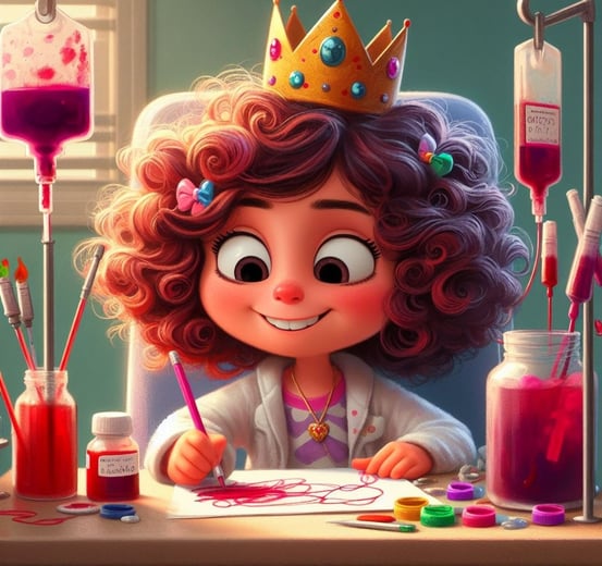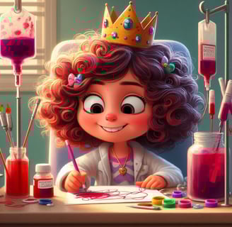 Sus rizos se cayeron, pero no le importaba, solo era pelo y volvería a crecer. Menos mal que el de su muñeca no se había caído. Por las noches dormían juntas y podía tocarlo. Un día el médico le dijo que como era una reina, su sangre era diferente, por eso estaba tan cansada. Ella pensó y pensó, por eso los reyes y reinas en los cuentos no hacen nada, porque seguro que, como ella, estaban siempre cansados.